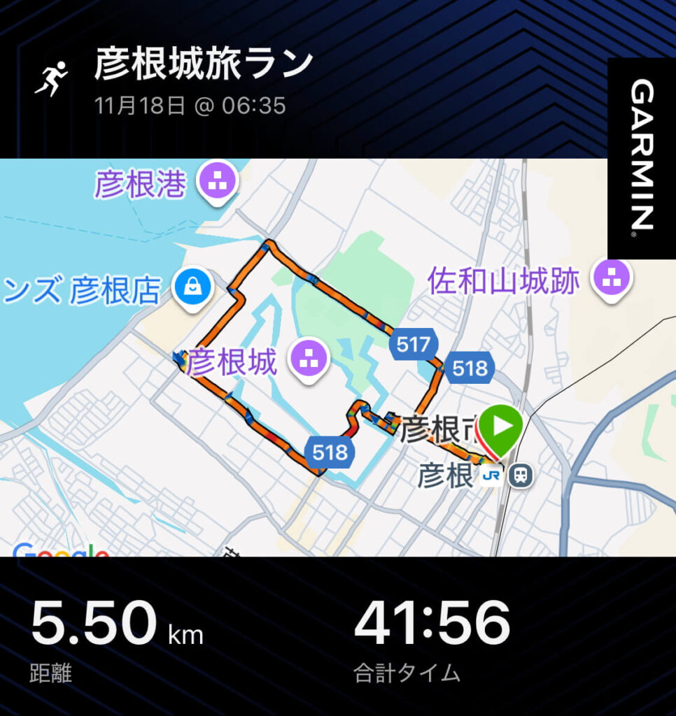 今回は、彦根駅近くの東横INNに宿泊し、朝の静かな時間に家族が寝ている間を抜けてランニングへ。