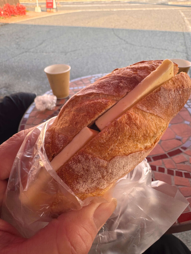 外に椅子と机がある!ランナーに優しいパン屋さんだった
