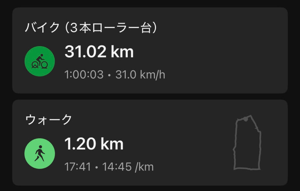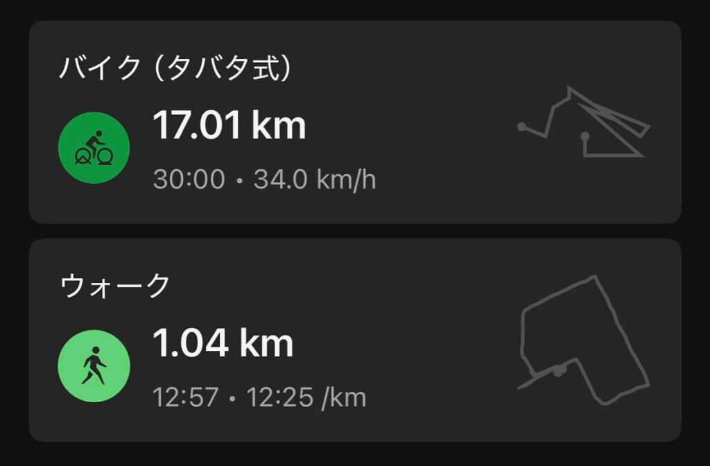 | 10/28(火) | ウォーク+バイク(タバタ式) | 1.04km 17km  | 古民家リフォームとトレーニング両立! |