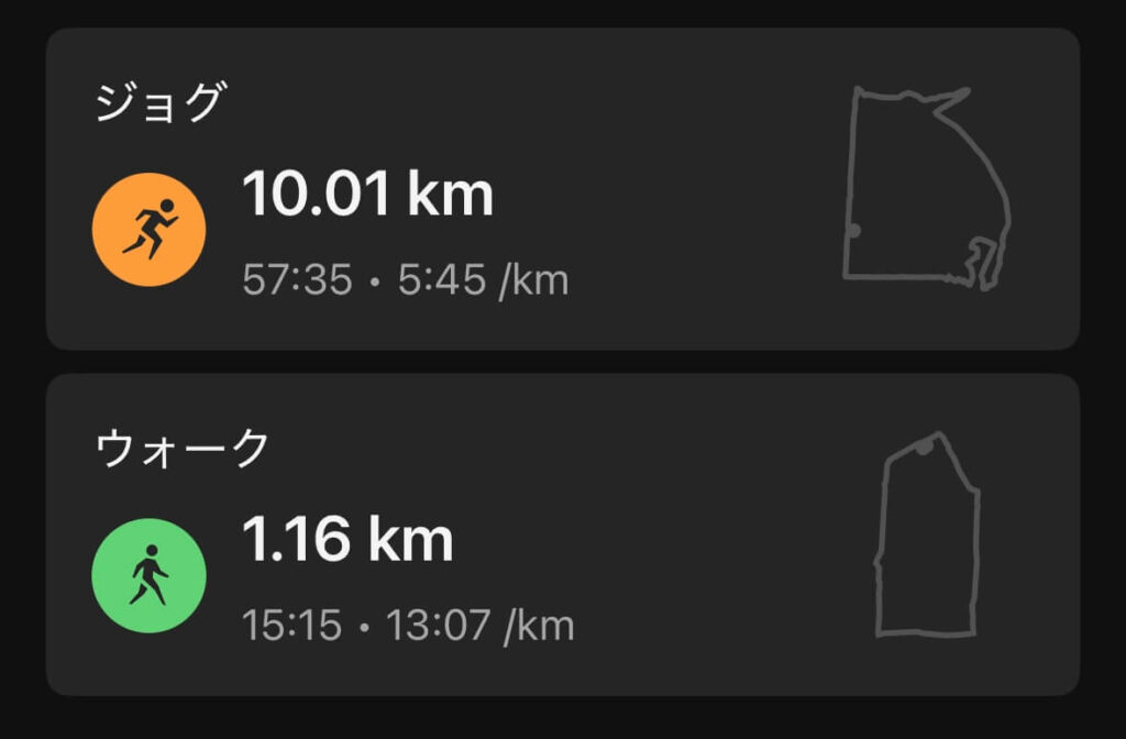| 11/2(日) | ウォーク ジョグ  | 1.16km 10km  | 走れる喜びを噛みしめる朝。 |