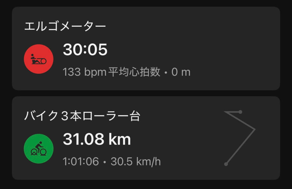 バイクだけだと飽きるけど、エルゴを入れることで良い刺激に。