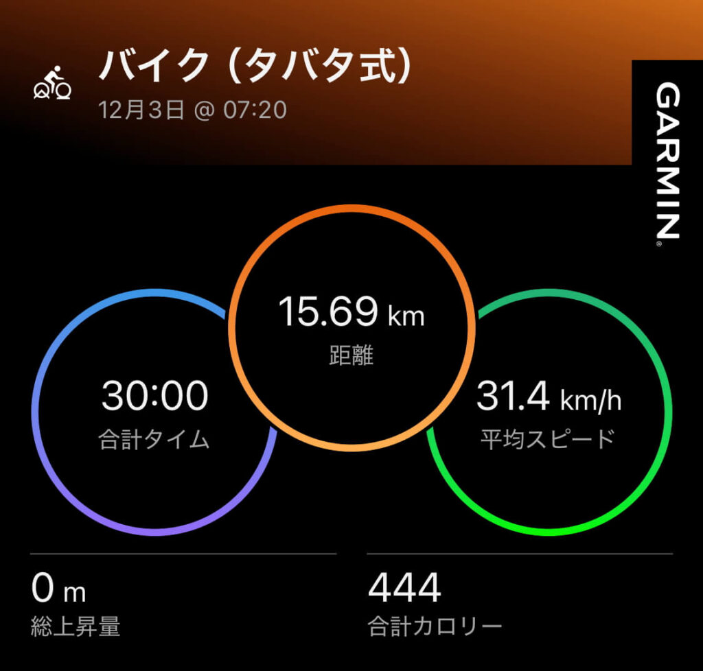 ◆12/3(水)タバタ式バイク15.69km+DIY