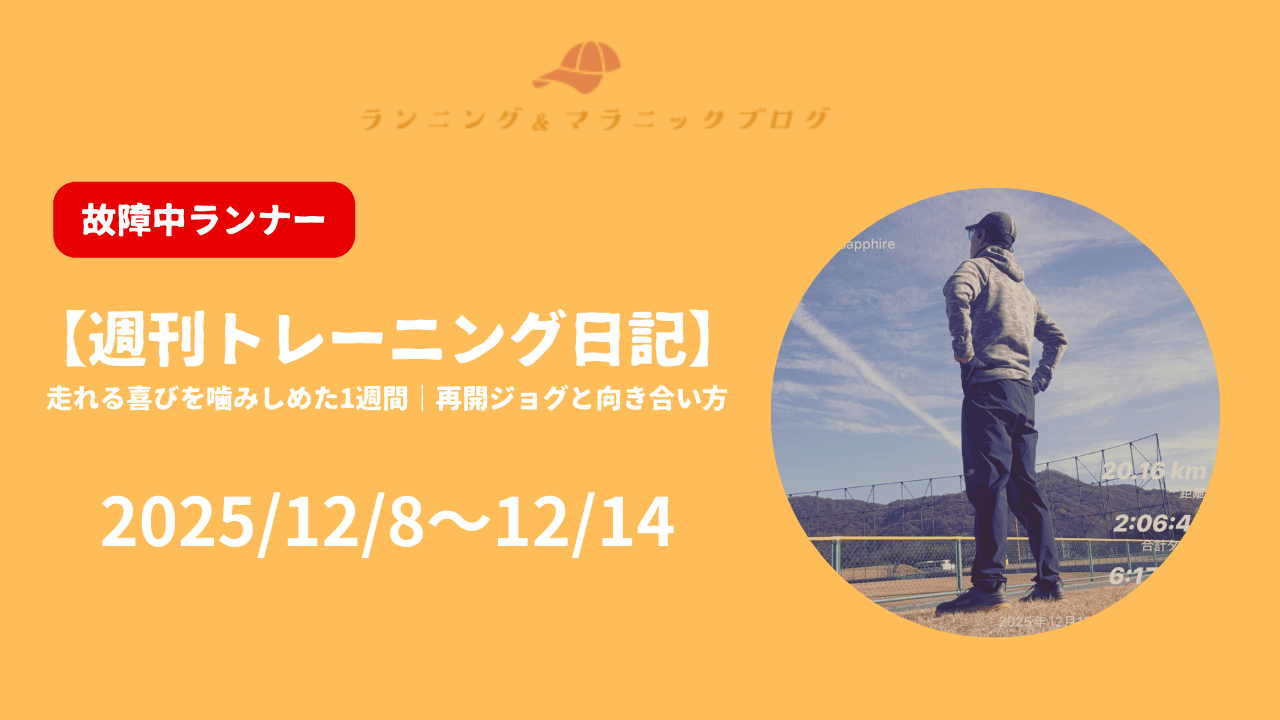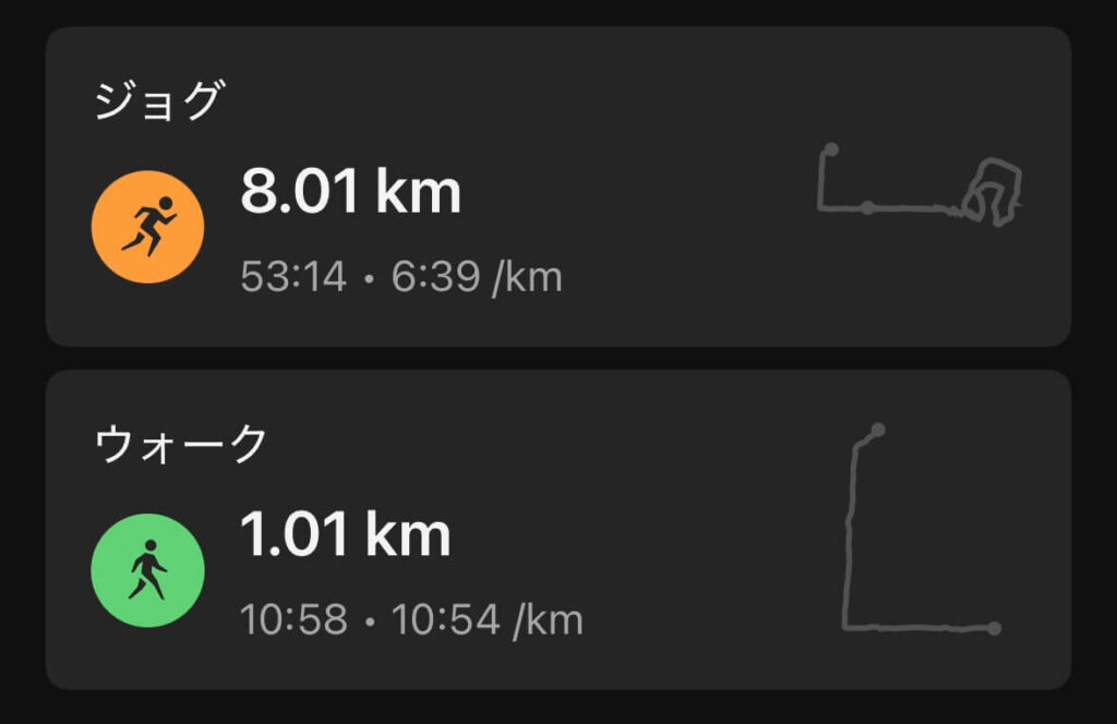 | 12/9(火) | ウォーク+ジョグ | ウォーク1km/ジョグ8km | 痛みゼロでラン再開! |