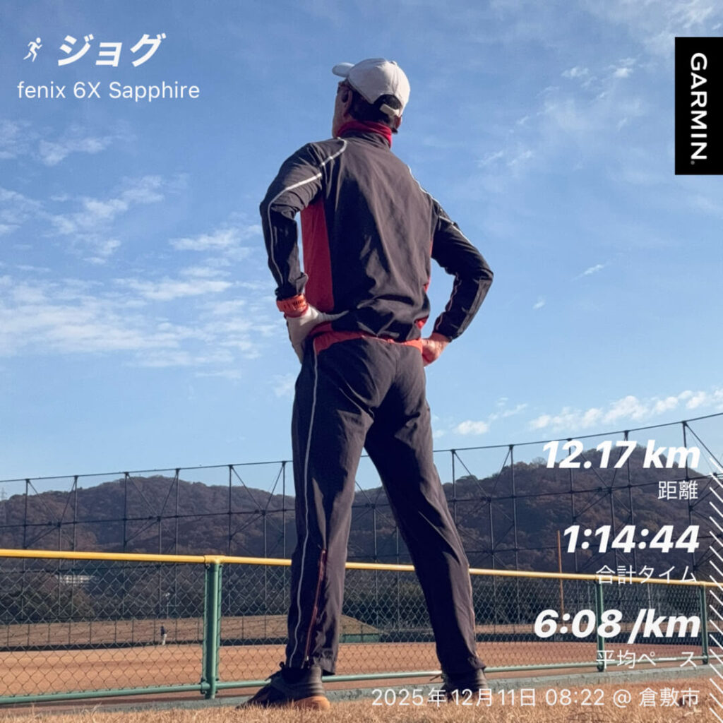 | 12/11(木) | ジョグ | 12.17km | 焦らず、少しずつ距離アップ |