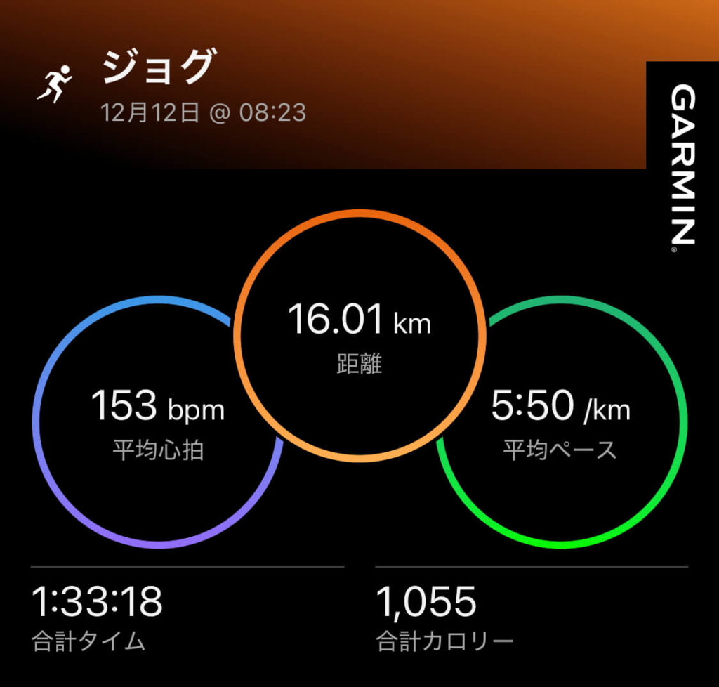 | 12/12(金) | ジョグ | 16km | 刺激と戒めをもらった日 |