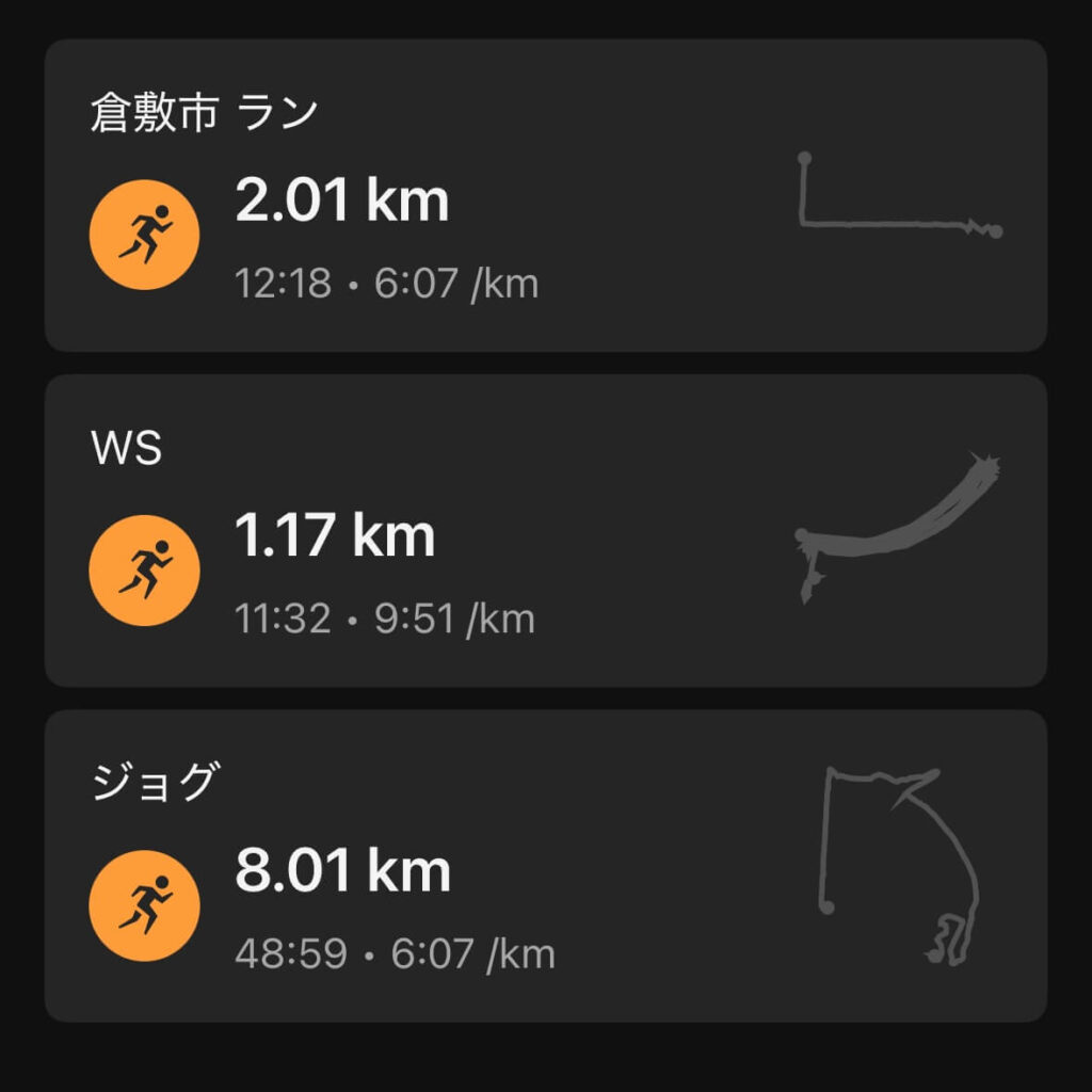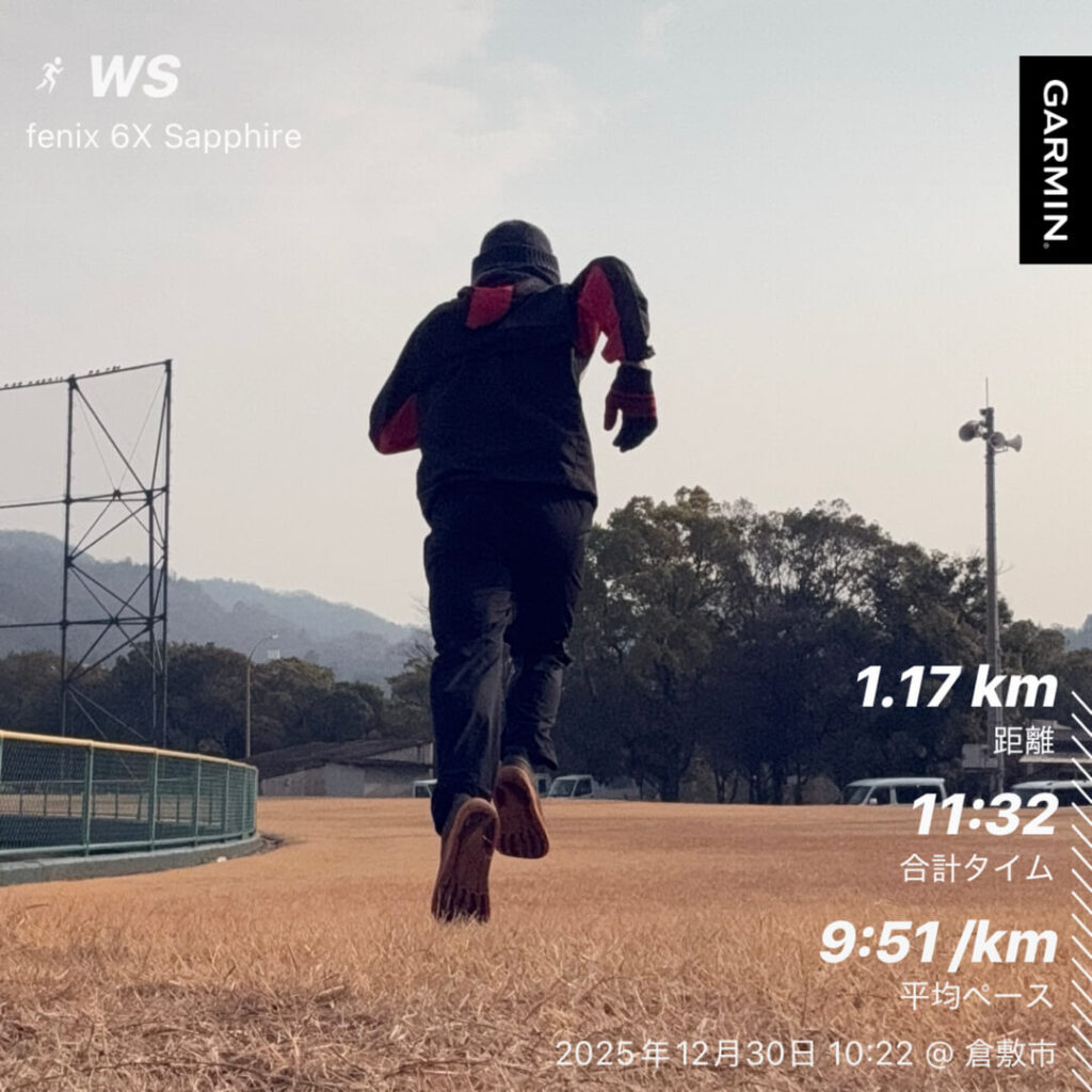 | 12/30(火) | ジョグ+WS | 計11.7km | 走り納め準備 |
