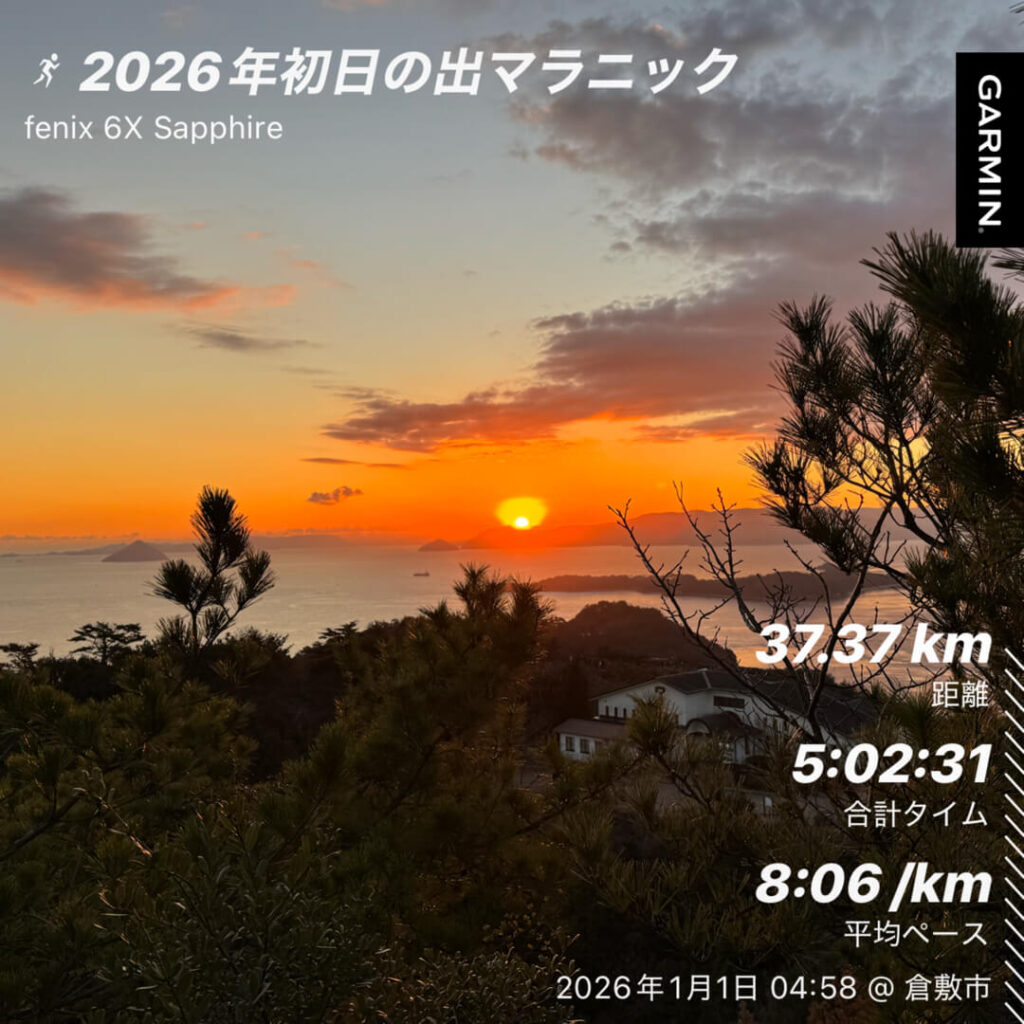 | 1/1(木) | 初日の出マラニック | 37.37km | 9年連続の恒例行事 |