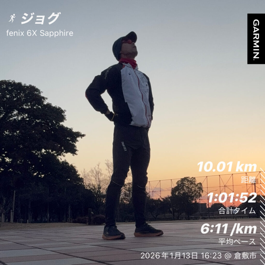 1/13(火)ジョグ10km夕焼けを見ながら重めジョグ