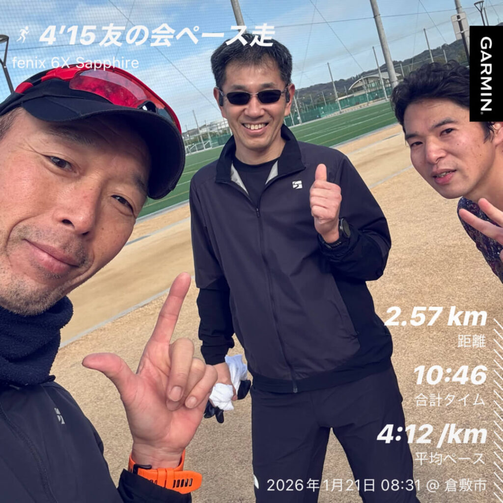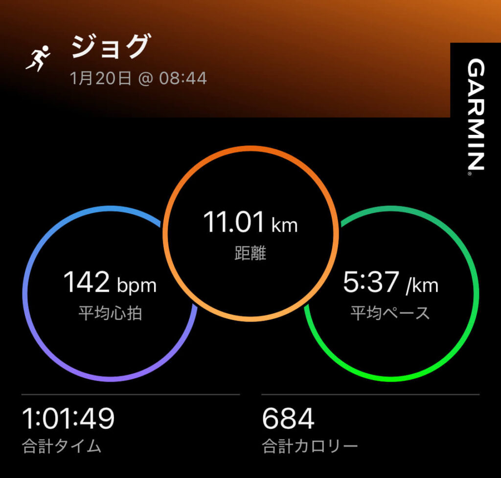 | 1/20(火) | ジョグ | 11km | お喋りランで自然とペースアップ |