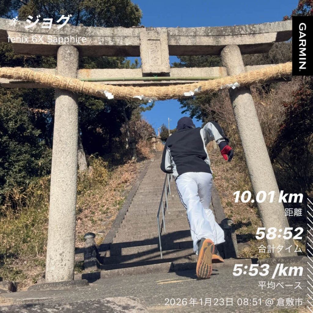 | 1/23(木) | ジョグ | 10km | 階段も少しずつ再開 |