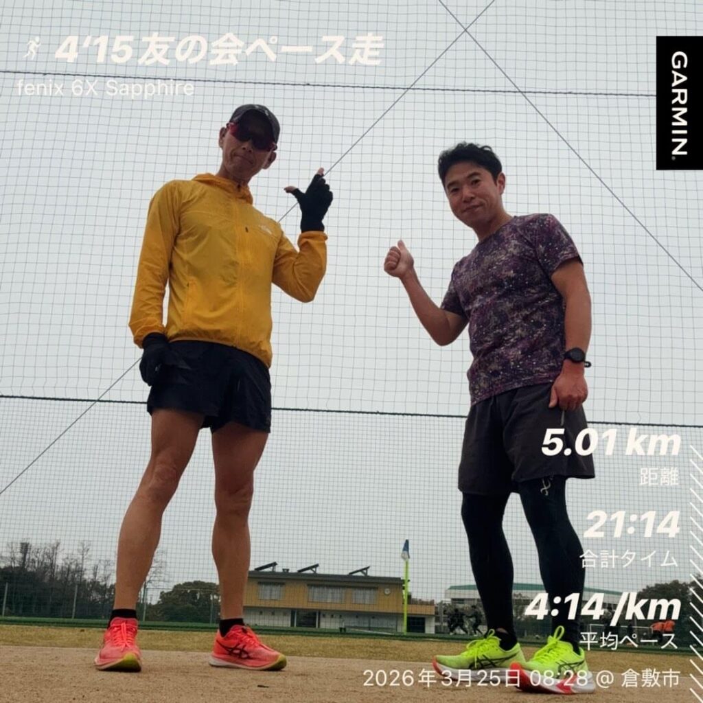 3/25(水)4’15友の会ペース走計10.0km雨の中、セルフケアを武器に5km完遂!