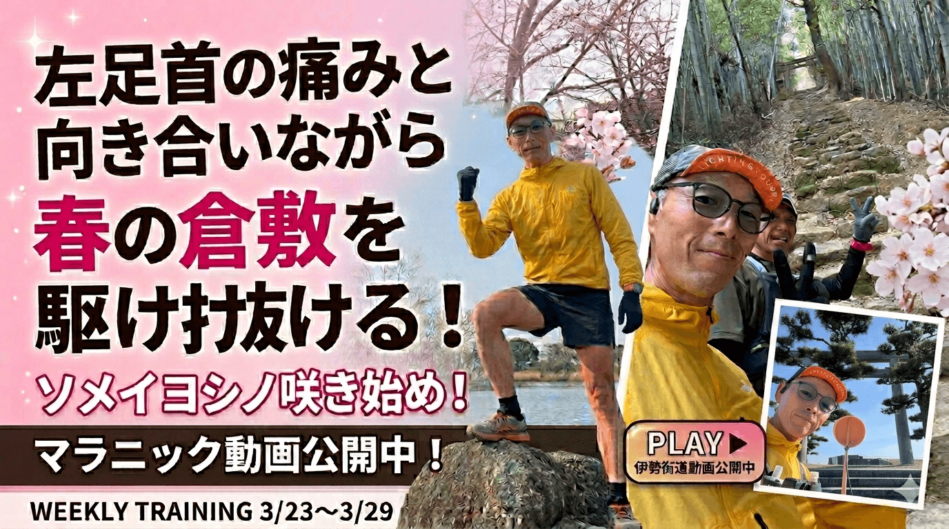 【週刊トレーニング日記 3/23〜3/29】ソメイヨシノ咲き始め!左足首の痛みと向き合いながら春の倉敷を駆け抜ける