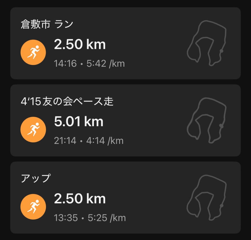 (アップ2.5km / ペース走5km / ダウン2.5km)