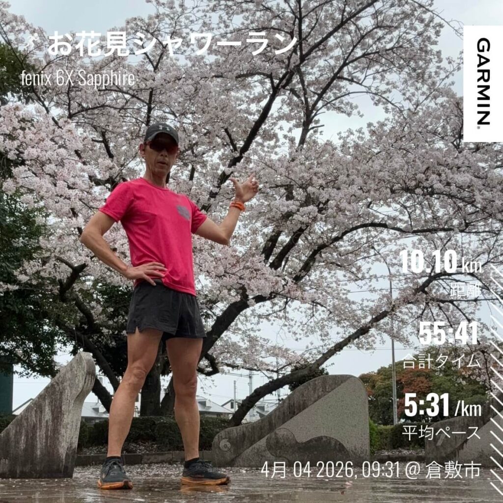 | 4/4(土) | お花見ジョグ | 10km | 雨にも負けず!シャワーランでお花見。 |