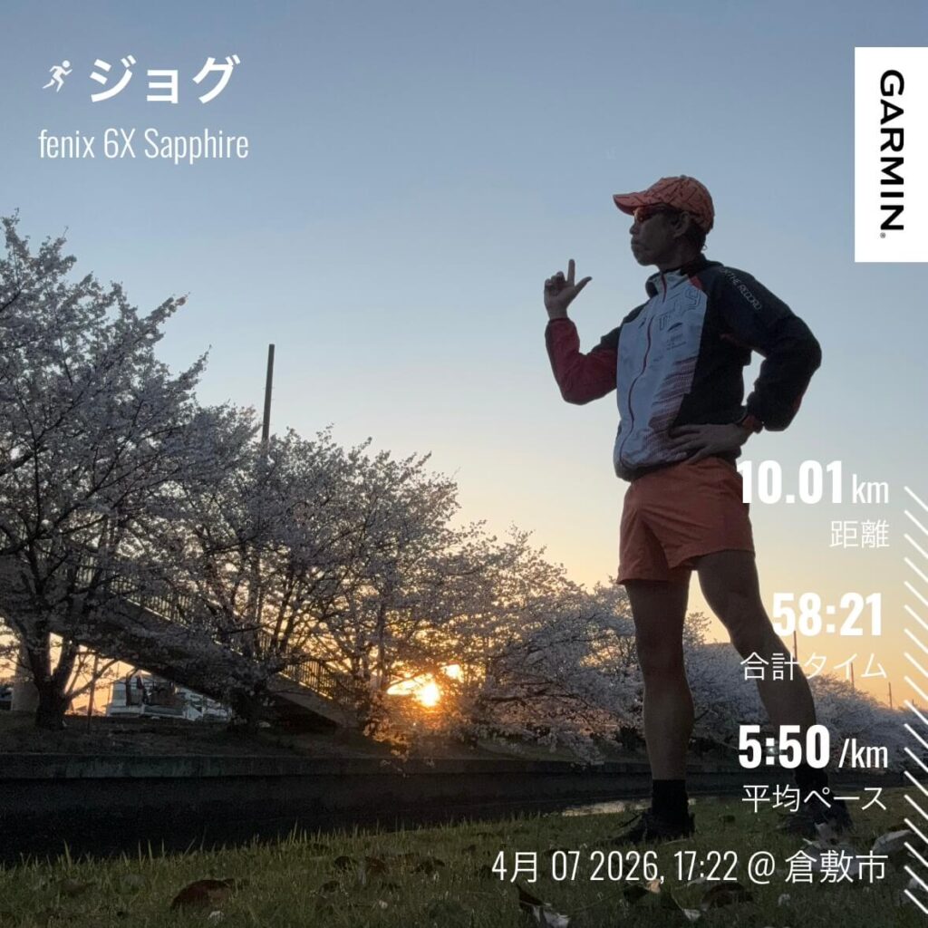 4/7(火)夕方ジョグ10km夕陽に照らされる桜が最高に美しかった!