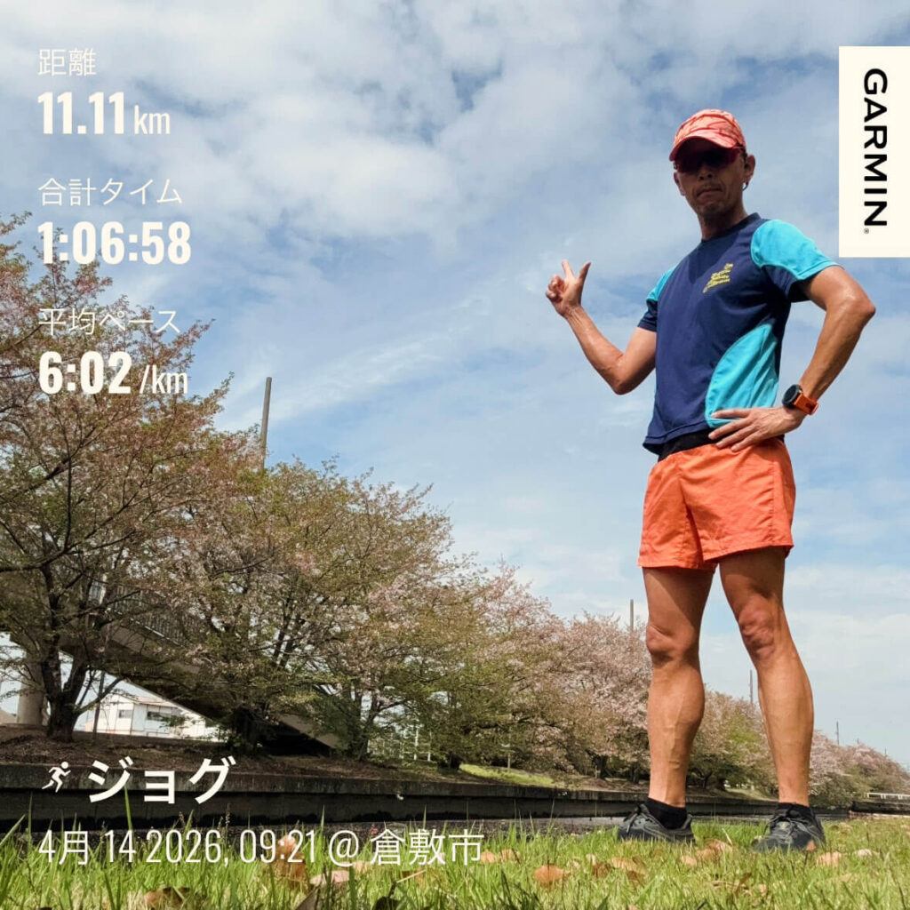 | 4/14(火) | ジョグ | 11.11km | 新インソール投入!痛みなくホッと一安心。 |