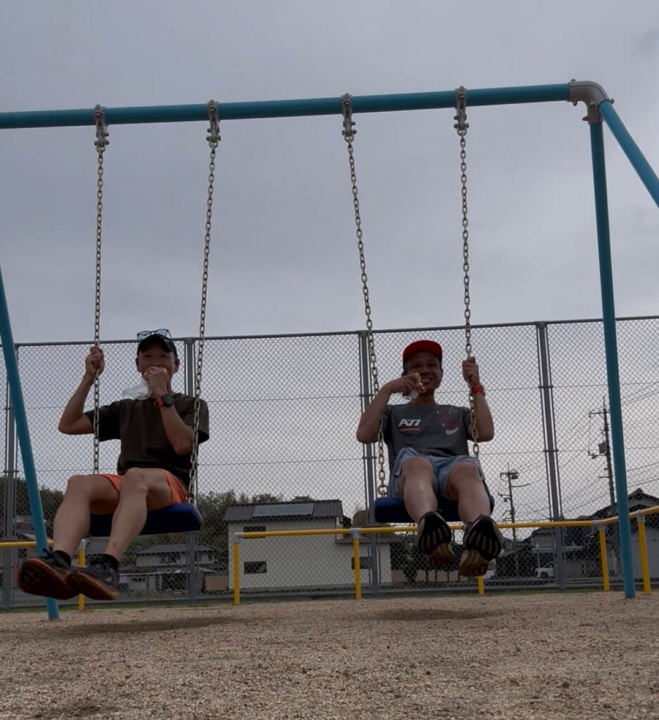 近くの公園のブランコに揺られながら、童心に帰ってパンをかじる。