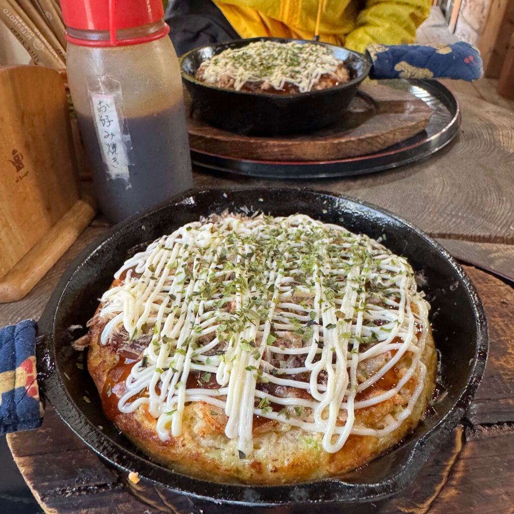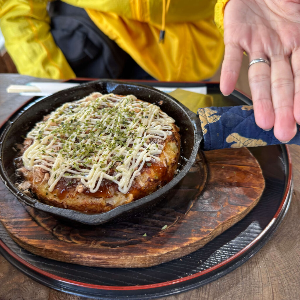 駅前で「おにもち」で補給しつつ、隣のお好み焼き屋さんへ。